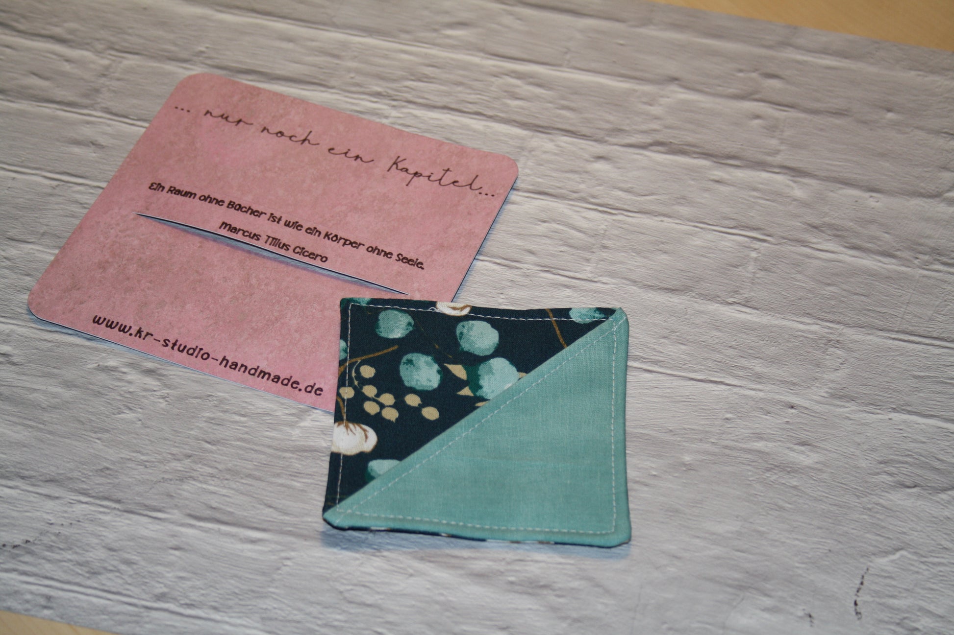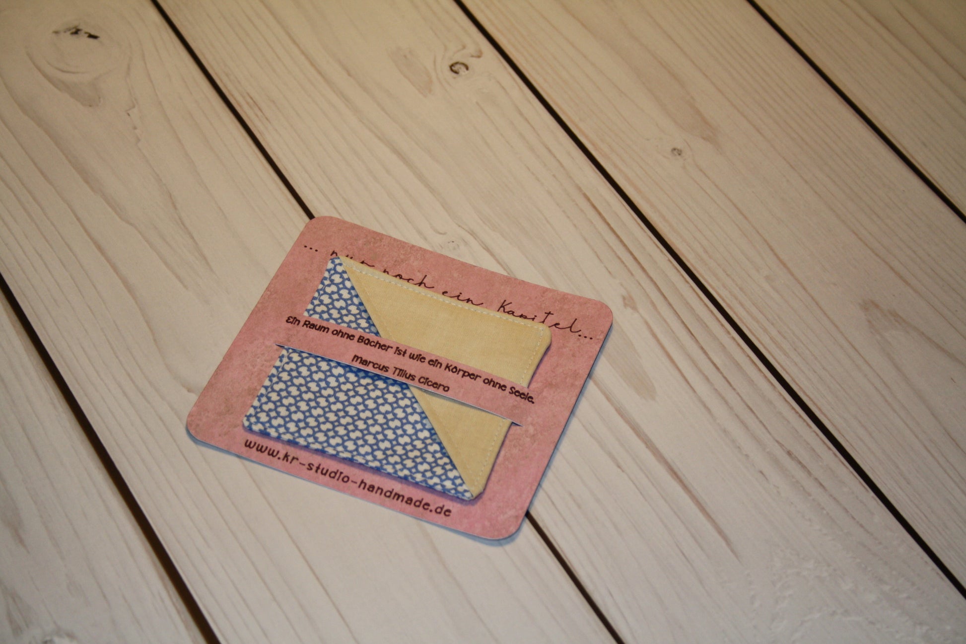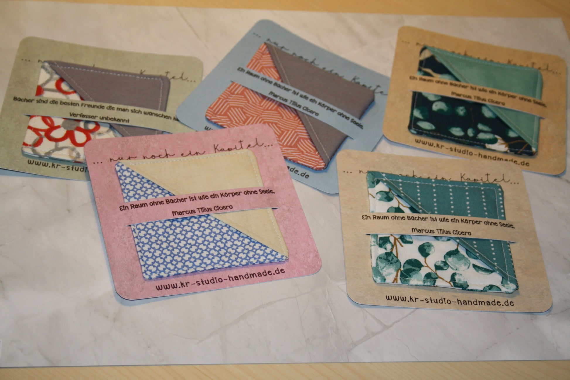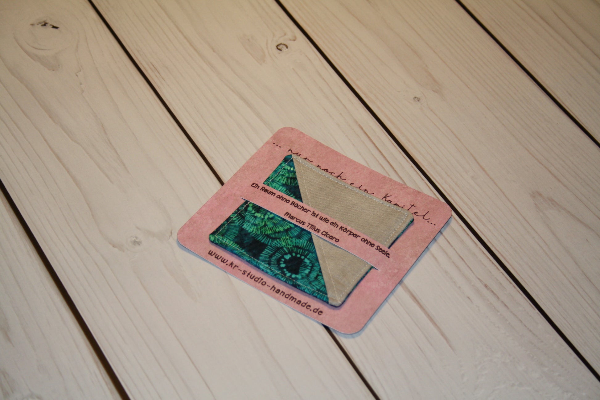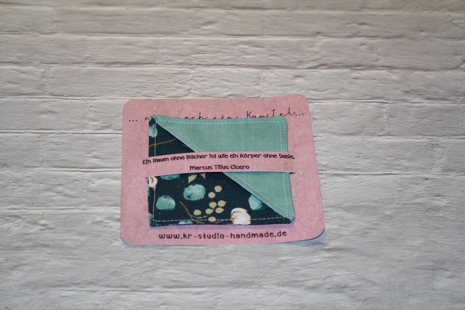 Jedes Lesezeichen wird individuell zugeschnitten und von mir genäht. Das Muster variiert leicht aufgrund des Zuschnitts.