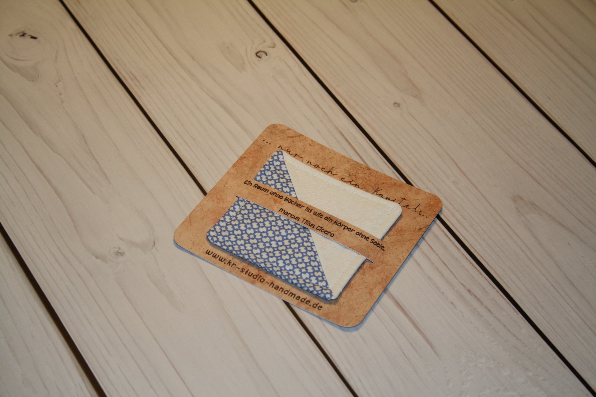 Aufgrund der Einzelfertigung ist jedes Lesezeichen eigentlich ein Einzelstück. Selbst bei gleicher Stoffzusammenstellung, wird es immer kleine Unterschiede geben.